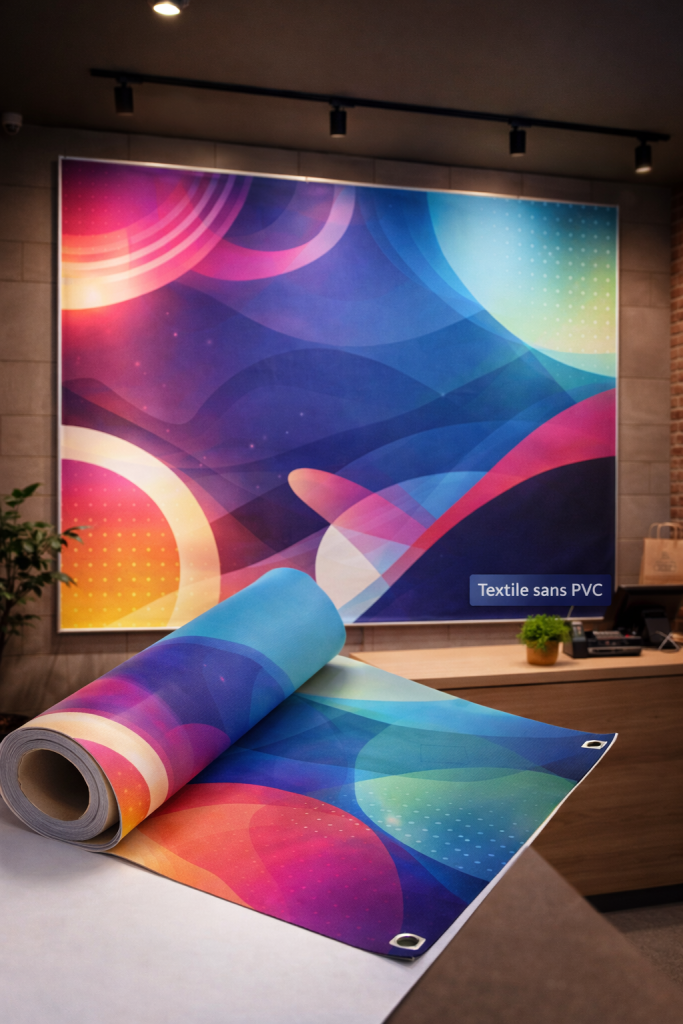 | Textile enduit mat sans PVC M1 | Communication écoresponsable | Aspect naturel, sans reflet, anti-feu | Intérieur haut de gamme |
