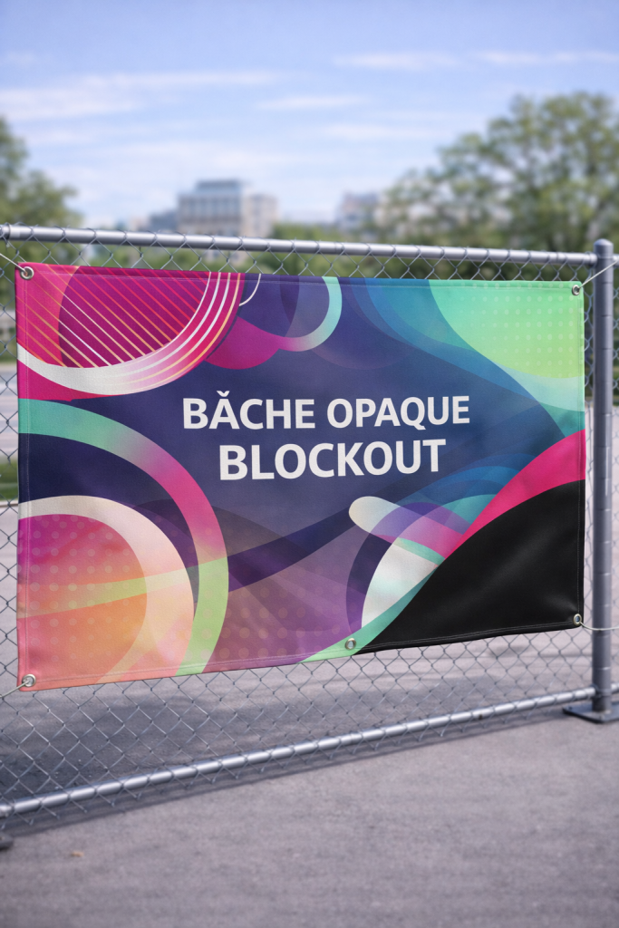 | Bâche dos noir 375g | Occultation, lisibilité | Empêche le passage de la lumière | Affichage extérieur, vitrines |