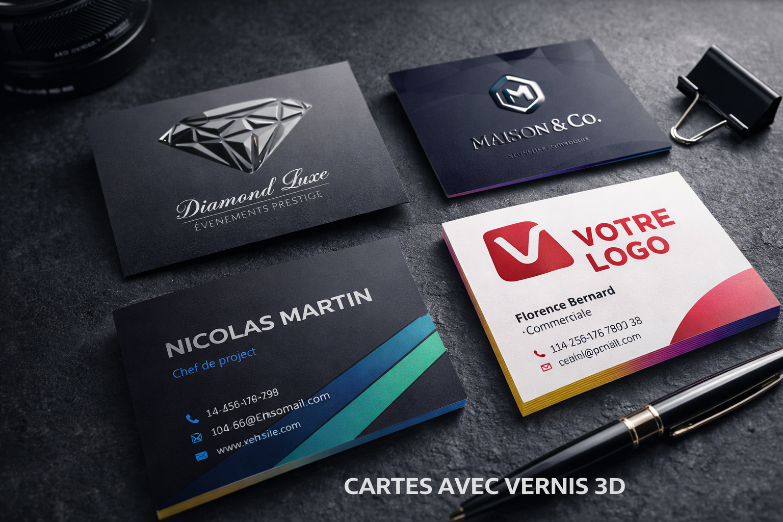 Nos cartes de visite personnalisées sont conçues pour refléter votre image de marque avec élégance, clarté et professionnalisme. Papier haut de gamme, finitions variées, impression HD : vous avez toutes les cartes en main pour marquer les esprits.
